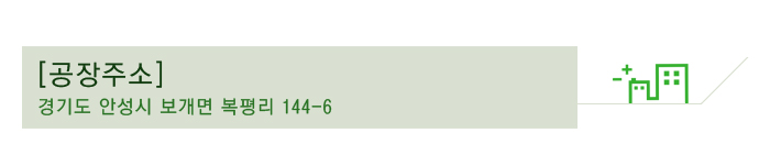 공장주소 : 충북 음성군 금왕읍 대금로 1270-8 / 파주공장 : 경기도 파주시 법원읍 못말길 371-34